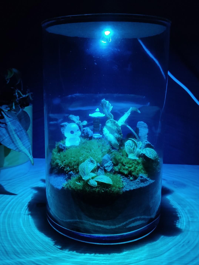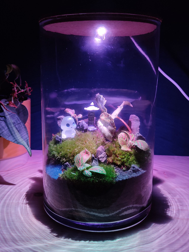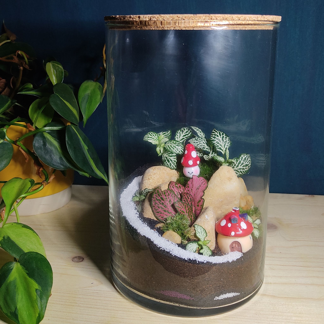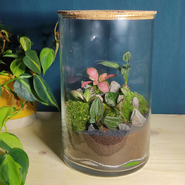Forêt Tropicale : Il est composé de Ludisia discolor, de Fittonia sp , de mousse boule, de phœnix stone et d’éléments minéraux.