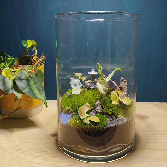 Forêt Zen : Il est composé de Begonia Sp, de Fittonia sp , de mousse boule, de phœnix stone et d’éléments minéraux. Ainsi qu'un esprit de la forêt, un hôtel japonnais et d'un éclairage intégré par branchement USB.